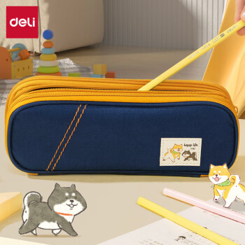 得力(deli)大容量三层学生笔袋可爱柴犬系列铅笔盒牛津布材